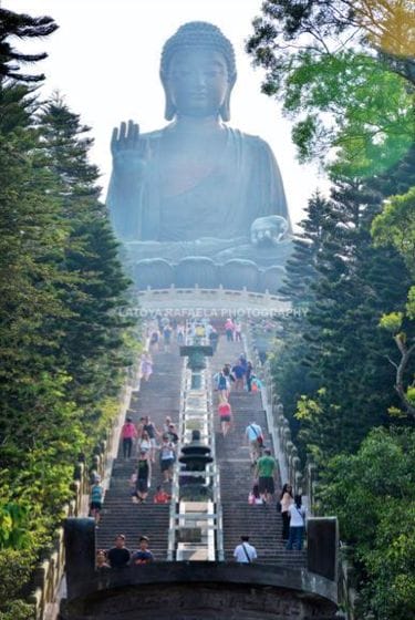 The best way to visit the Big Buddha is by cable cart: Ngong Ping 360. This will bring you up to the entrance, while you can enjoy a 30 minute trip through the mountains and enjoy a wonderful view of the surroundings.